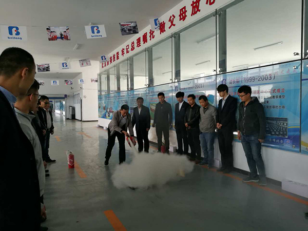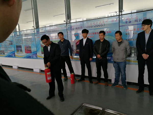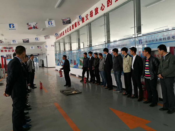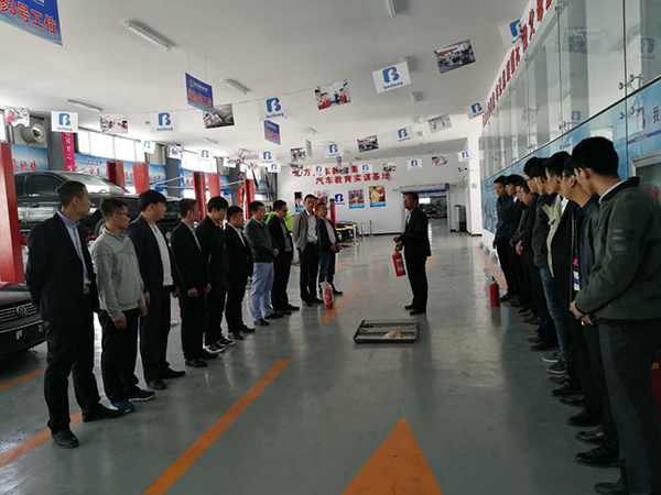 建昌职教中心北方汽车专业9号车间,利用中午休息时间,王校组织带全体老师进行消防器材安全演习!